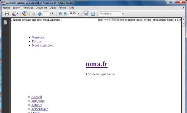 document (pour l'exemple, nous avons choisis de convertir une page html de